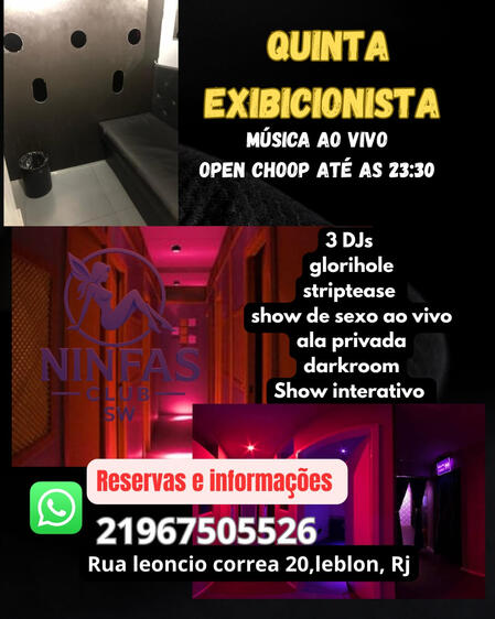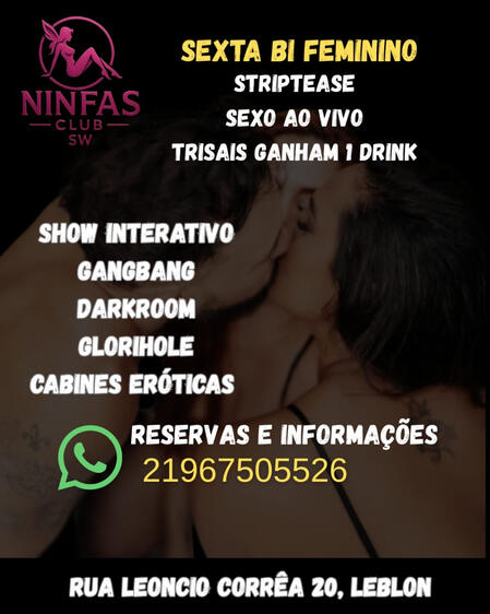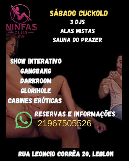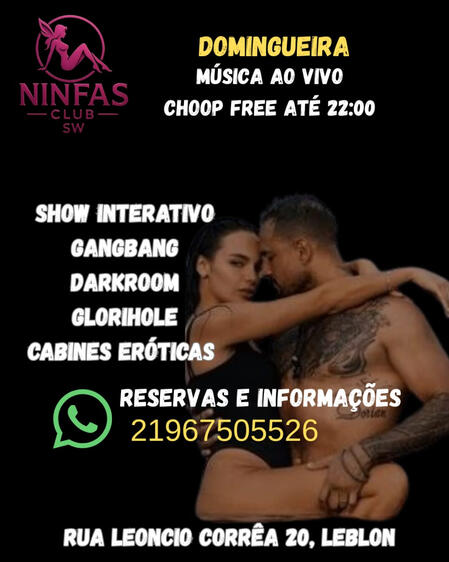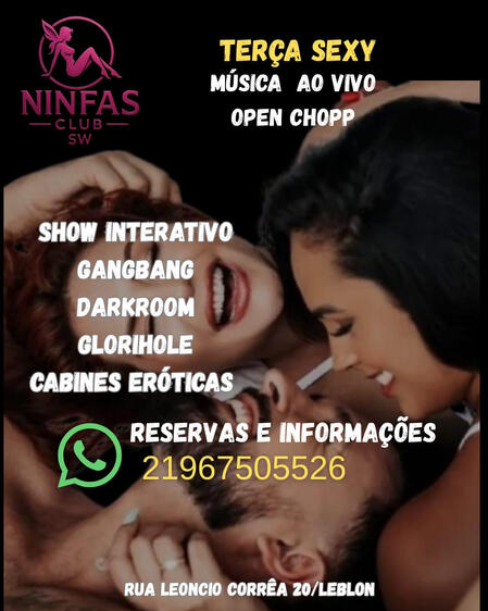 Bem vindos a Ninfas swing club, um espaço sofisticado e de alto padrão para quem busca o melhor da vida liberal.Localizado no Leblon, nosso espaço conta com ambientes exclusivos de alto padrão, incluindo suítes temáticas , cabines eróticas, sauna,darkroom e muito mais.Entre em contato e agende uma visita.